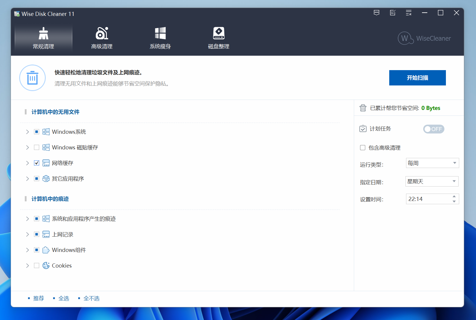明智的磁盘清理程序清理上网历史,缓存文件和IE浏览器,Chrome浏览器,火狐,Opera和Safari浏览器的cookies。